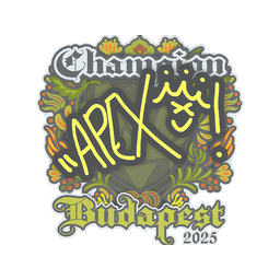 The apEX (Champion) | Budapest 2025 is a weapon skin in Counter-Strike 2. The Budapest 2025 finish applies a unique visual style to the apEX (Champion), making it a sought-after CS2 skin among players and collectors.