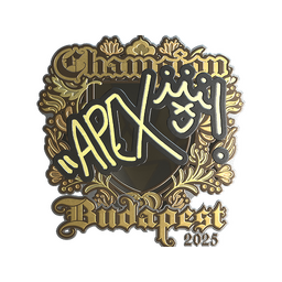 The apEX (Gold, Champion) | Budapest 2025 is a weapon skin in Counter-Strike 2. The Budapest 2025 finish applies a unique visual style to the apEX (Gold, Champion), making it a sought-after CS2 skin among players and collectors.