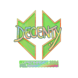 The decenty (Holo) | Copenhagen 2024 is a weapon skin in Counter-Strike 2. The Copenhagen 2024 finish applies a unique visual style to the decenty (Holo), making it a sought-after CS2 skin among players and collectors.