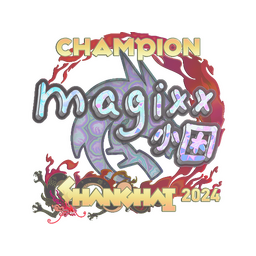 The magixx (Holo, Champion) | Shanghai 2024 is a weapon skin in Counter-Strike 2. The Shanghai 2024 finish applies a unique visual style to the magixx (Holo, Champion), making it a sought-after CS2 skin among players and collectors.